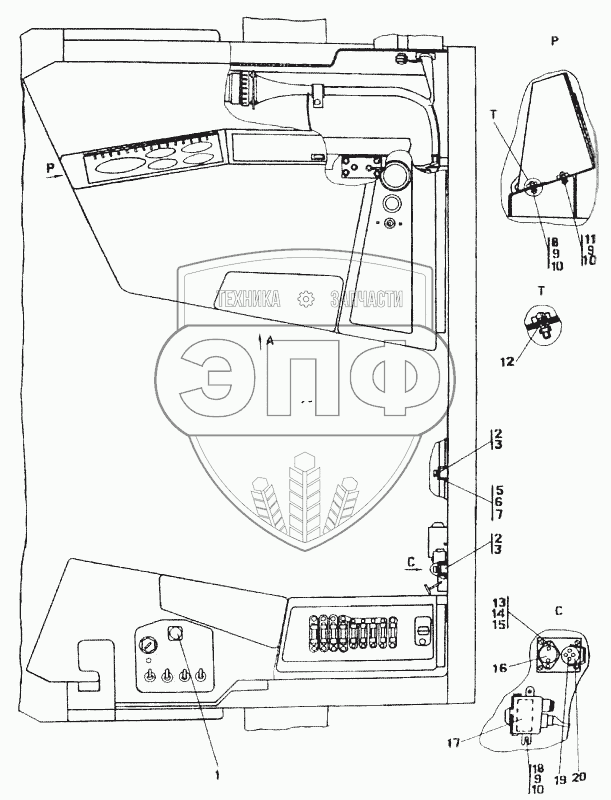 Каталог запасных частей к технике: Промтрактор Т-20.01Я. Электрооборудование пола кабины
