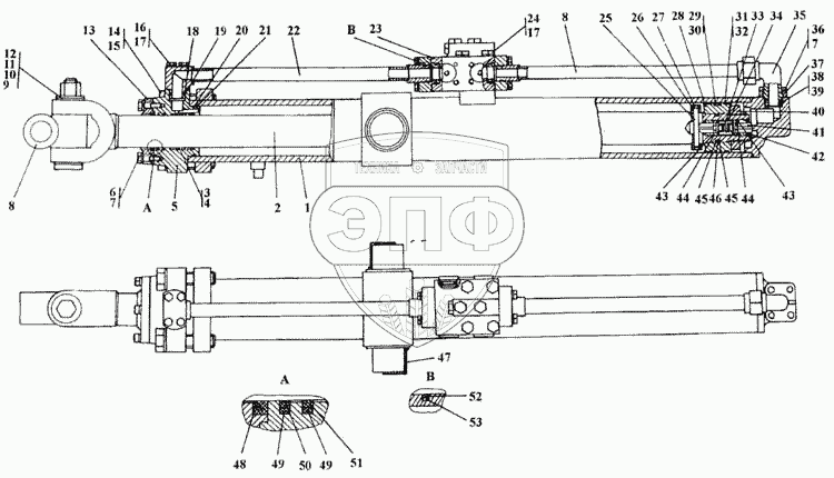 Каталог запасных частей к технике: Промтрактор Т-20.01Я. Гидроцилиндр диаметром 125 мм