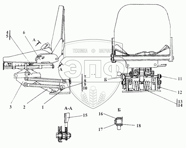 Каталог запасных частей к технике: Промтрактор Т-20.01Я. Сиденье