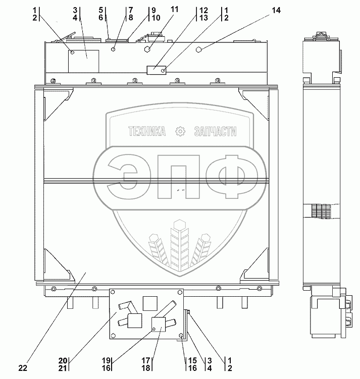 Каталог запасных частей к технике: Промтрактор Т-25.01К1. Блок радиаторов