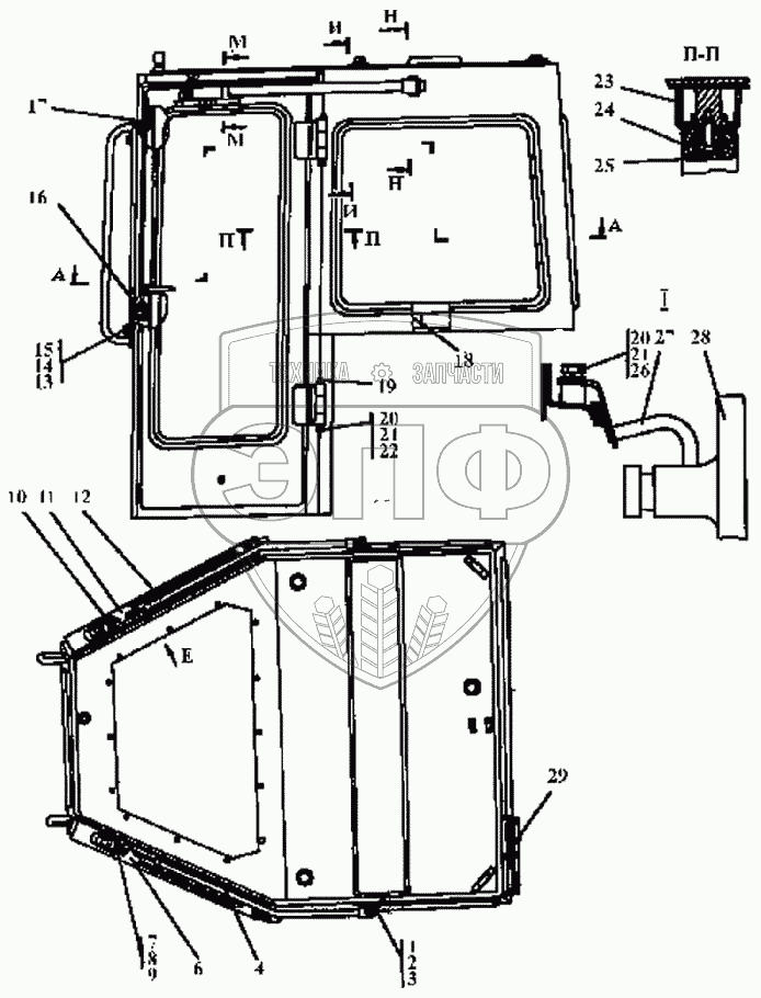 Каталог запасных частей к технике: Промтрактор Т-25.01Я. Кабина (1)