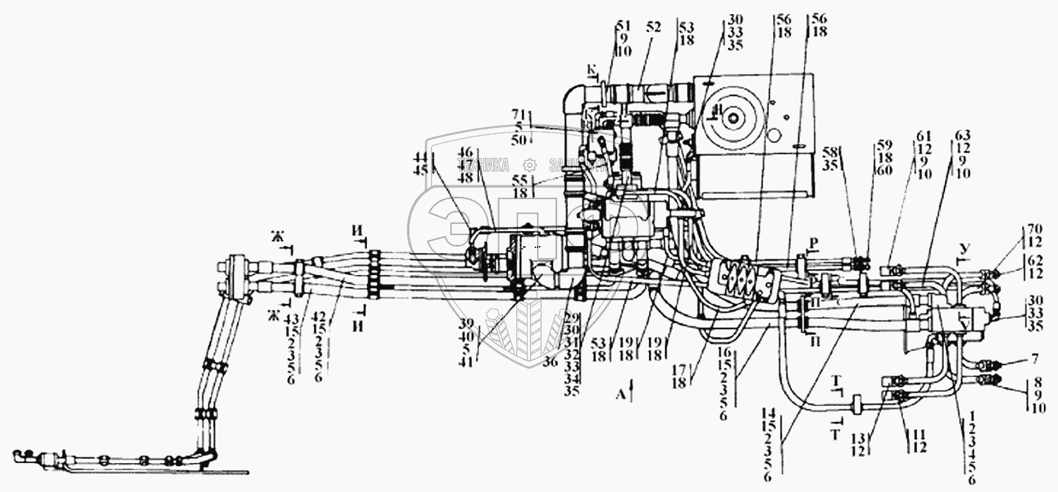 Каталог запасных частей к технике: Промтрактор Т-25.01Я. Установка гидросистемы (1)