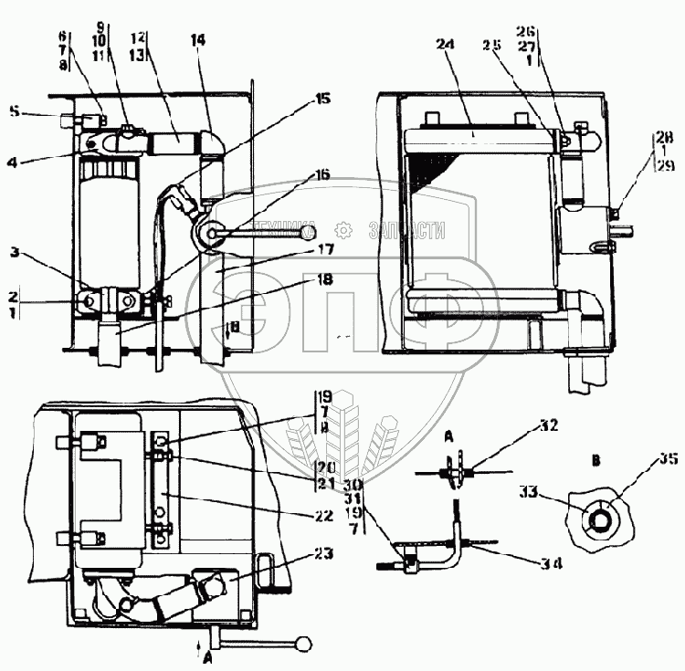 Каталог запасных частей к технике: Промтрактор Т-25.01Я. Установка обогревателя кабины