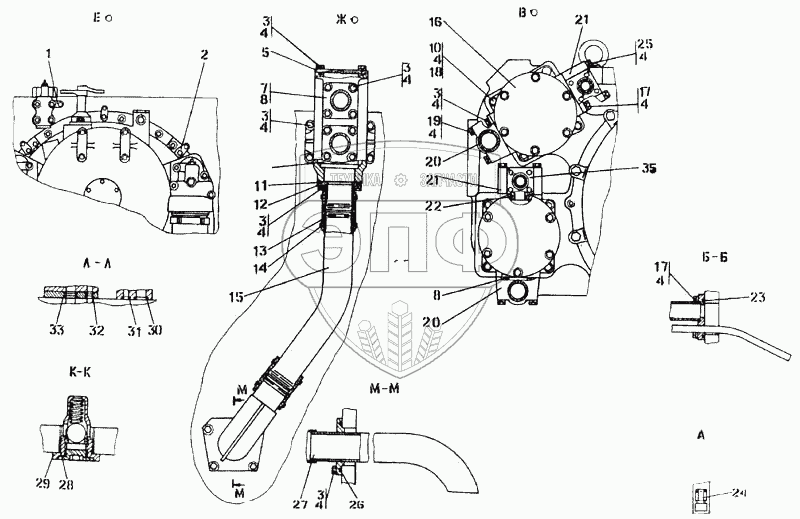 Каталог запасных частей к технике: Промтрактор Т-35.01Я. Установка трансмиссии