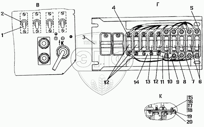 Каталог запасных частей к технике: Промтрактор Т-50.01. Блок выключателей