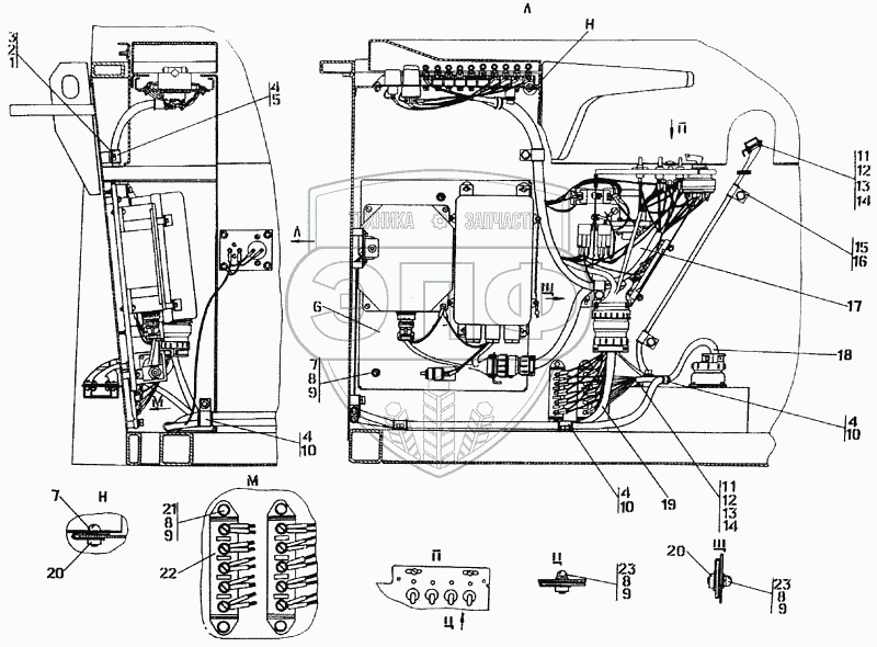 Каталог запасных частей к технике: Промтрактор Т-50.01. Электрооборудование пола кабины