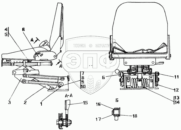Каталог запасных частей к технике: Промтрактор Т-50.01. Сиденье