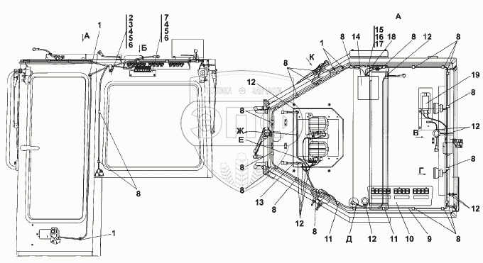 Каталог запасных частей к технике: Промтрактор Т-9.01Я. Электрооборудование крыши кабины