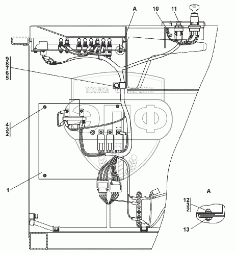 Каталог запасных частей к технике: Промтрактор Т-9.01Я. Установка блока выключателей