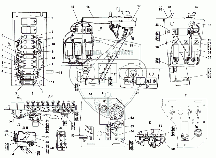 Каталог запасных частей к технике: Промтрактор ТГ-121Я. 311502-10-100СП Блок выключателей