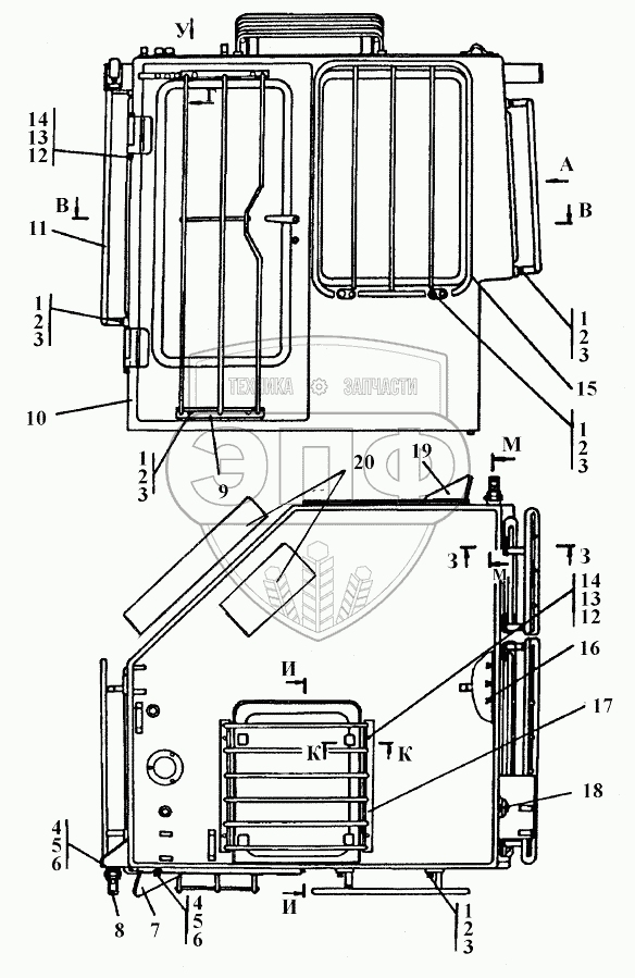 Каталог запасных частей к технике: Промтрактор ТГ-221КМ. Кабина