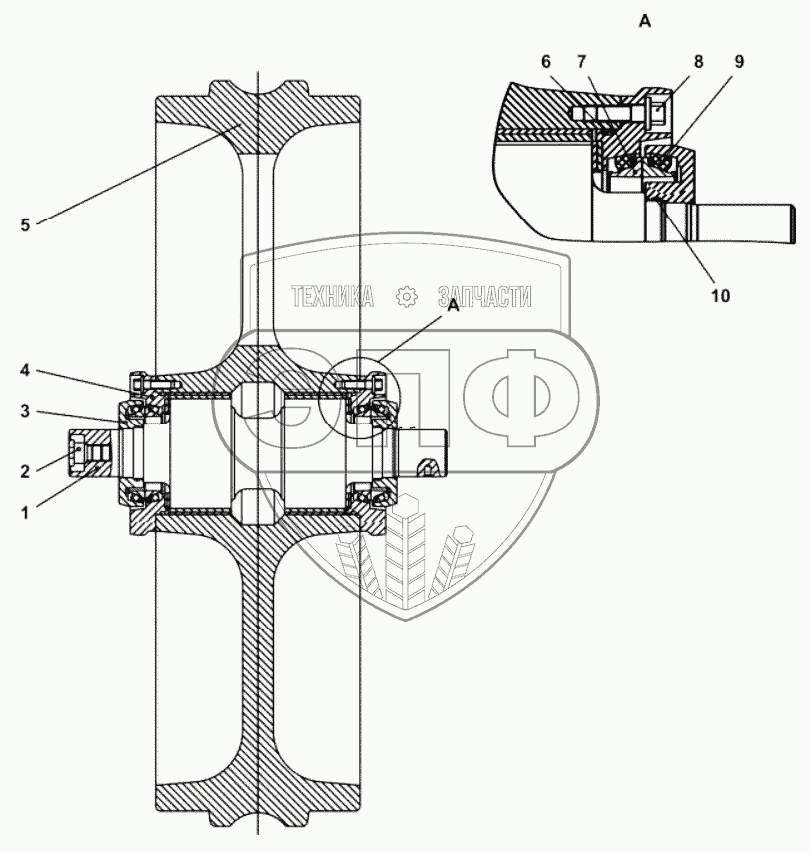 Каталог запасных частей к технике: Промтрактор ТГ-221КМ. Колесо натяжное