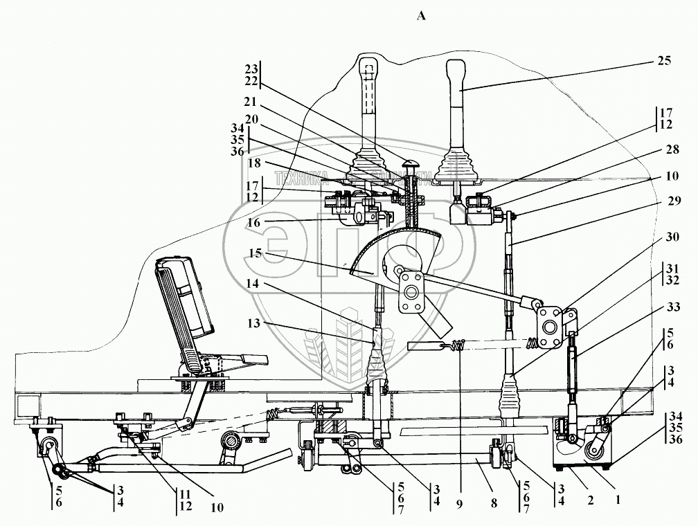 Каталог запасных частей к технике: Промтрактор ТГ-221КМ. Привод управления