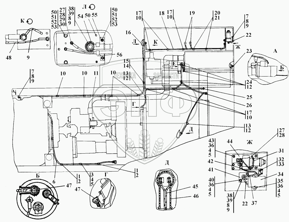 Каталог запасных частей к технике: Промтрактор ТГ-221КМ. Установка электрооборудования на раме