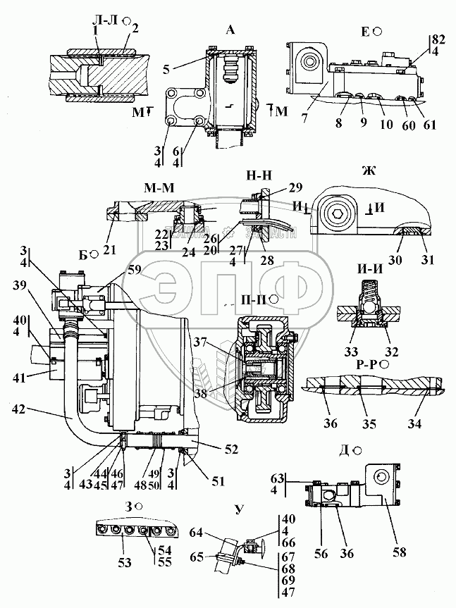Каталог запасных частей к технике: Промтрактор ТГ-221КМ. Установка трансмиссии