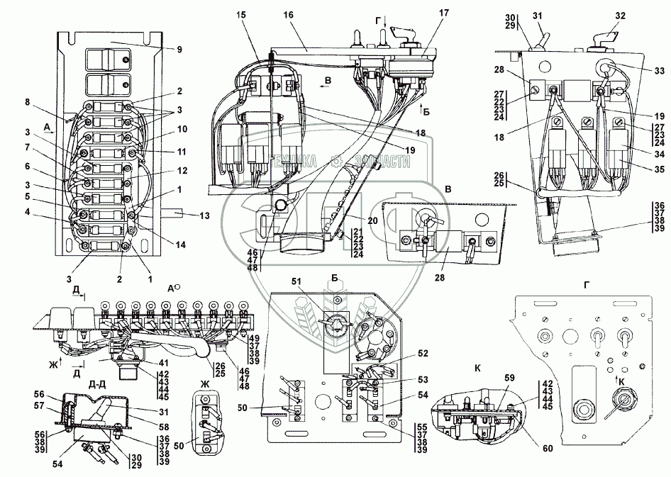 Каталог запасных частей к технике: Промтрактор ТГ-301Я. 311502-10-100СП Блок выключателей