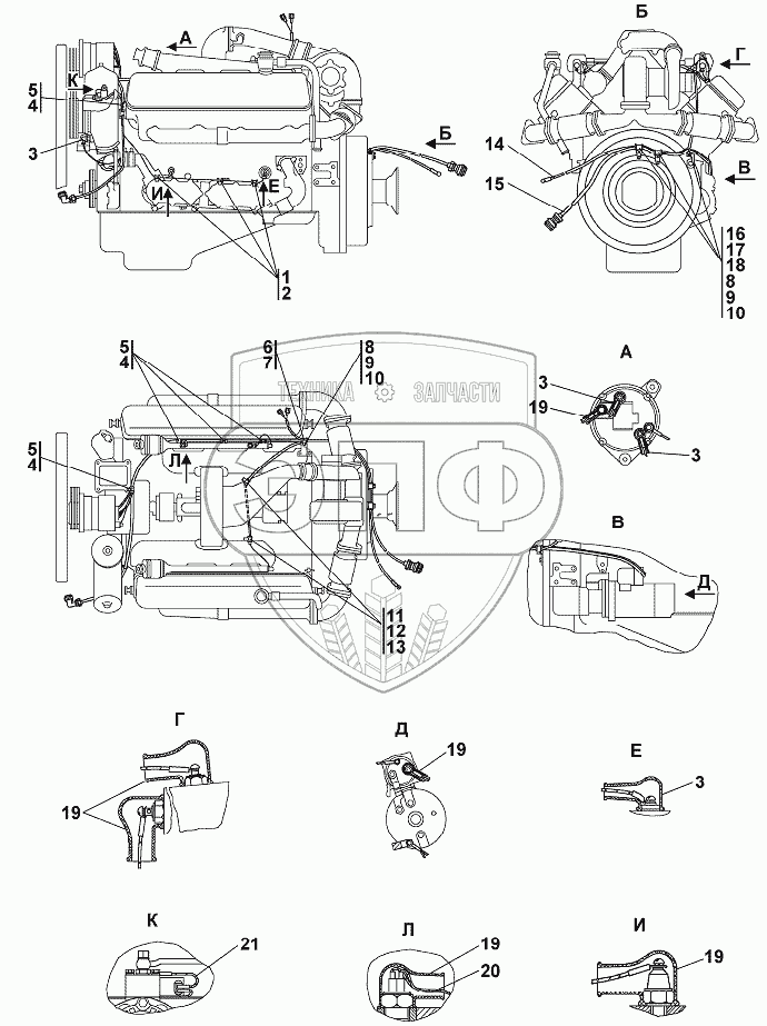 Каталог запасных частей к технике: Промтрактор ТГ-302Я. Электрооборудование двигателя