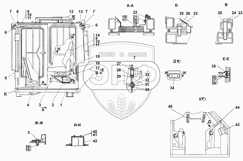 Каталог запасных частей к технике: Промтрактор ТГ-302Я. Кабина