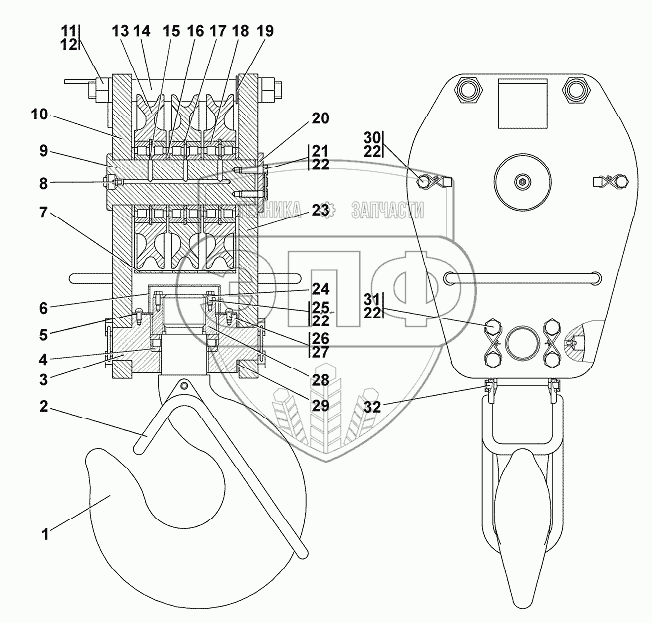 Каталог запасных частей к технике: Промтрактор ТГ-302Я. Подвеска крюка