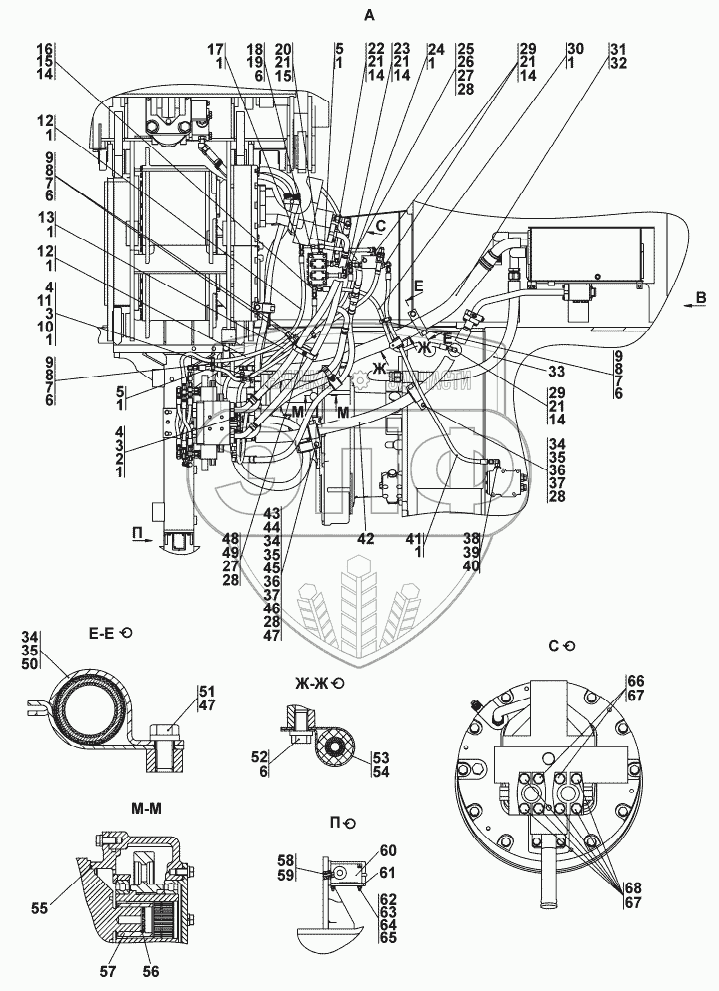 Каталог запасных частей к технике: Промтрактор ТГ-302Я. Установка гидросистемы