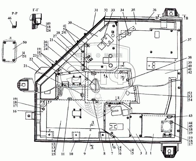 Каталог запасных частей к технике: Промтрактор ТГ-503К. 312501-24-1СП Пол