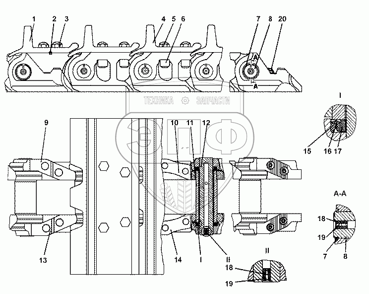 Каталог запасных частей к технике: Промтрактор ТГ-503К. 405-22-1СП Гусеница
