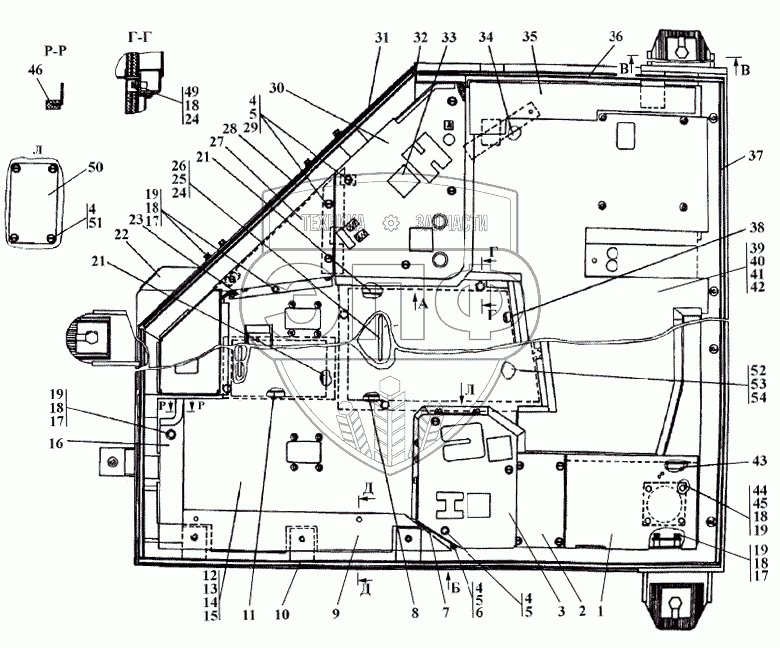 Каталог запасных частей к технике: Промтрактор ТГ-503Я. 312501-24-1СП Пол