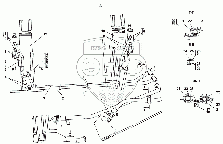 Каталог запасных частей к технике: Промтрактор ТГ-503Я. Установка гидросистемы