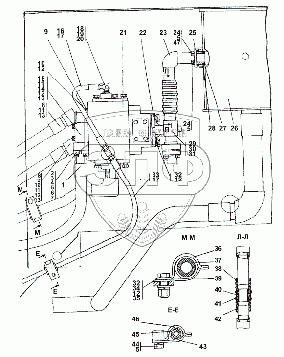 Каталог запасных частей к технике: Промтрактор ТГ-503Я. Установка гидросистемы