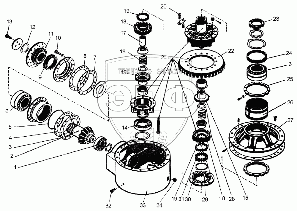 Каталог запасных частей к технике: ПТЗ К-702МБА. Главная передача с дифференциалом