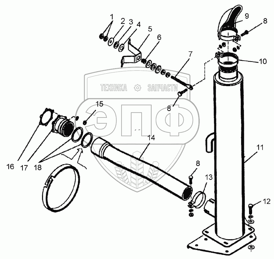 Каталог запасных частей к технике: ПТЗ К-702МБА. Система выпуска отработавших газов