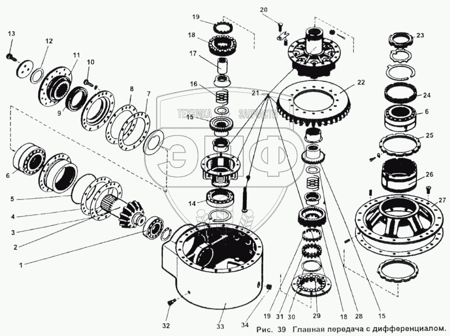 Каталог запасных частей к технике: ПТЗ К-702МВ. Главная передача с дифференциалом