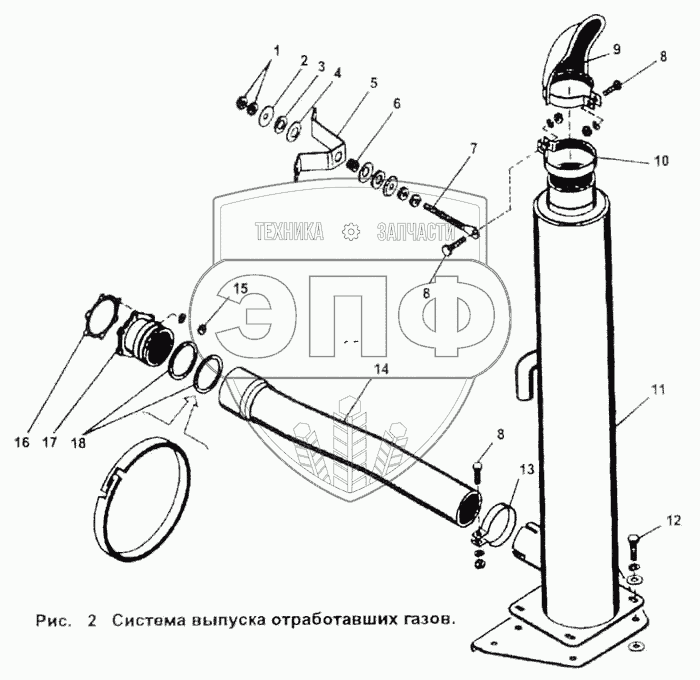Каталог запасных частей к технике: ПТЗ К-702МВ. Система выпуска отработанных газов