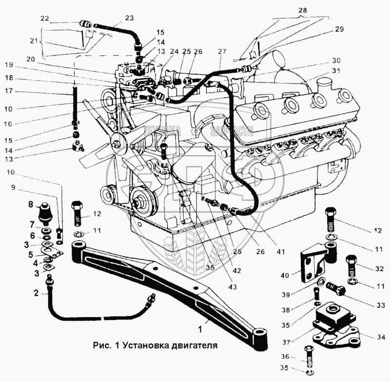 Каталог запасных частей к технике: ПТЗ К-702МВ. Установка двигателя