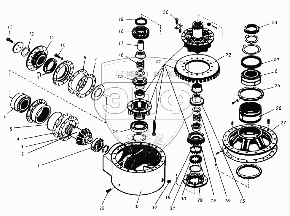 Каталог запасных частей к технике: ПТЗ К-702МВА. Главная передача с дифференциалом