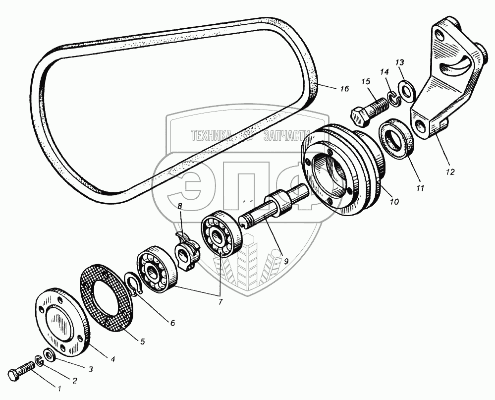 Каталог запасных частей к технике: ПТЗ К-702МВА. Натяжное приспособление ремня водяного насоса