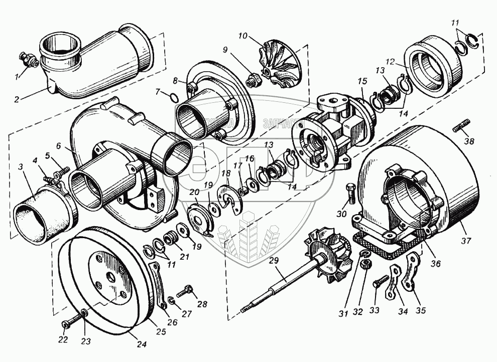 Каталог запасных частей к технике: ПТЗ К-702МВА. Турбокомпрессор двигателя ЯМЗ-8423.10