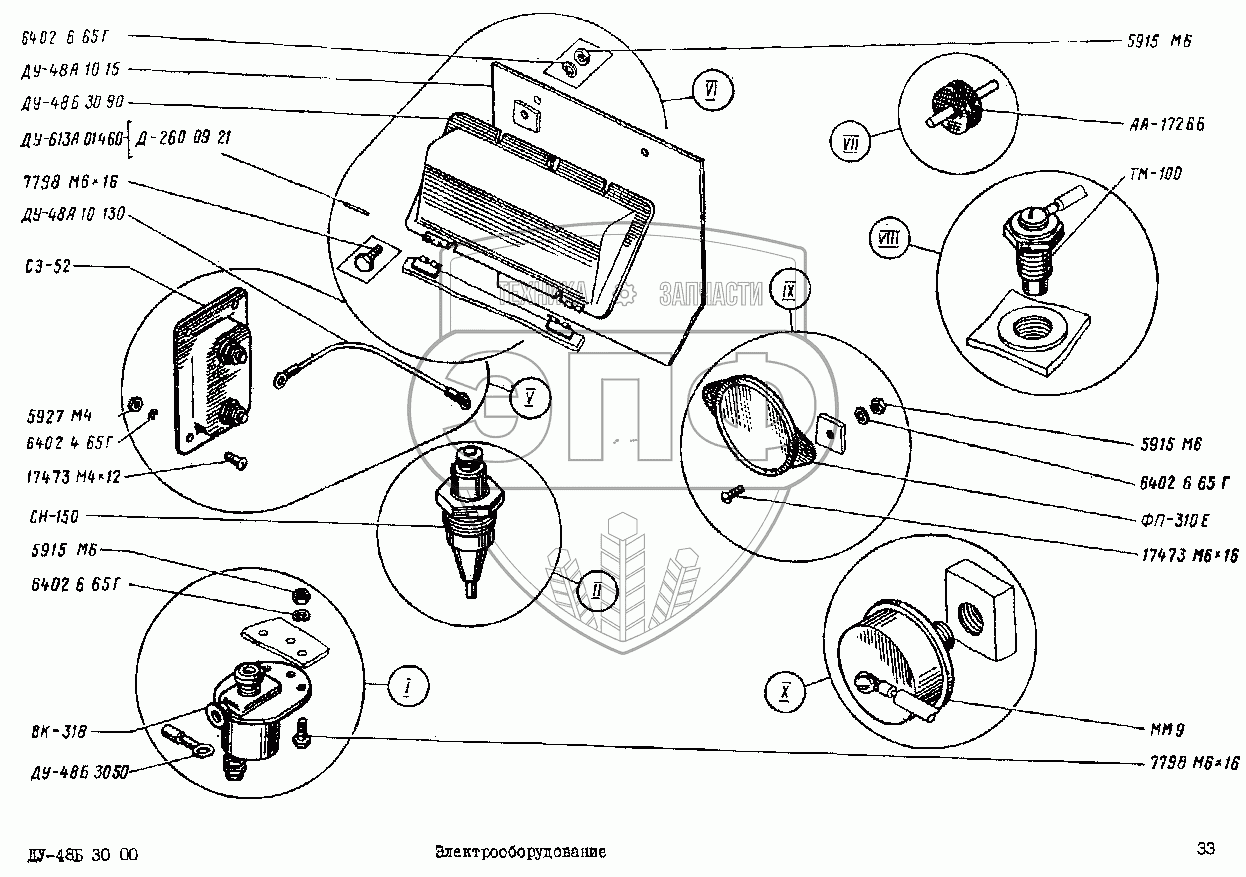 Каталог запасных частей к технике: Раскат ДУ-48Б. Электрооборудование ДУ-48Б 30 00