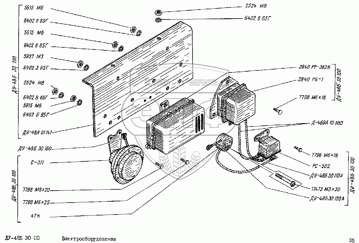Каталог запасных частей к технике: Раскат ДУ-48Б. Электрооборудование ДУ-48Б 30 00