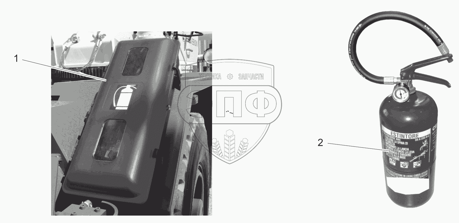 Каталог запасных частей к технике: RM-Terex RT35-1. Fire extinguisher and box