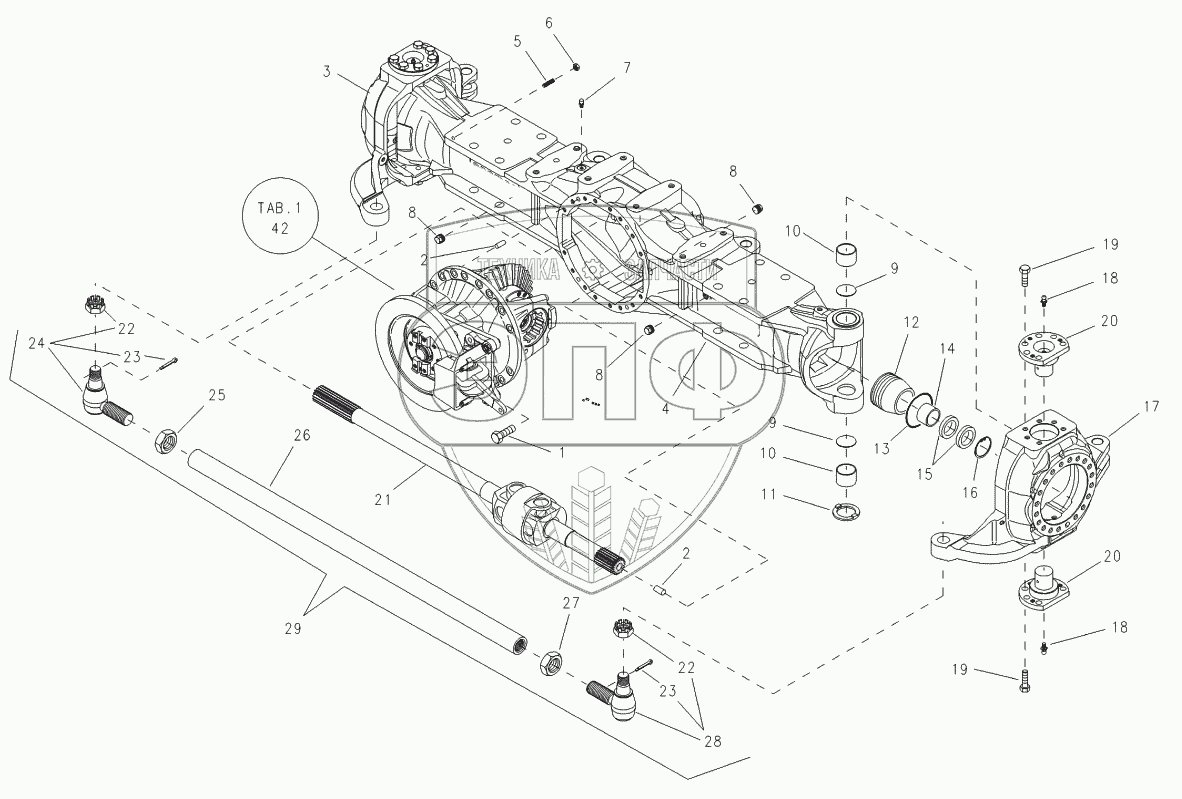 Каталог запасных частей к технике: RM-Terex RT35-1. Front axle