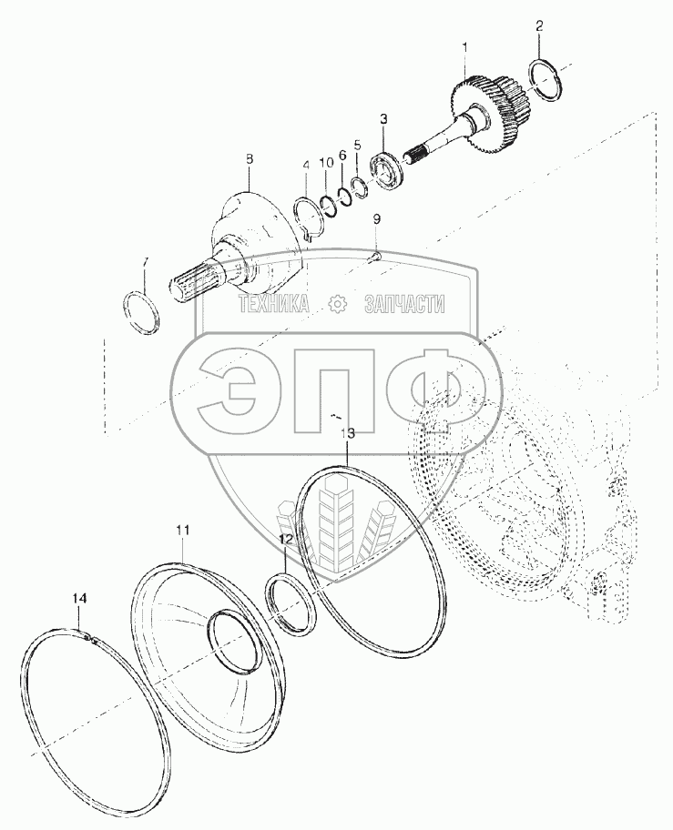 Каталог запасных частей к технике: RM-Terex RT35-1. Group turbine shaft