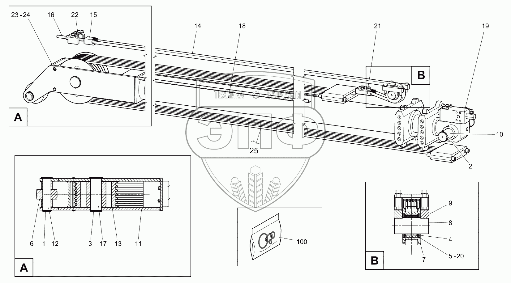 Каталог запасных частей к технике: RM-Terex RT35-1. Telescopic boom extending