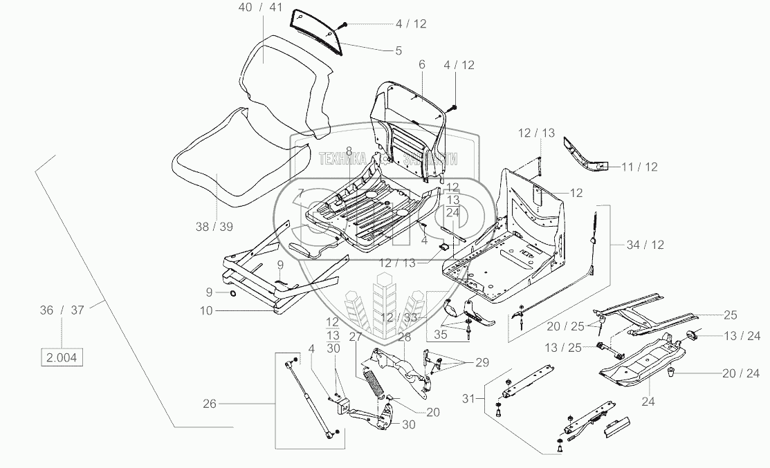 Каталог запасных частей к технике: RM-Terex TC35. Operators Seat Msg20