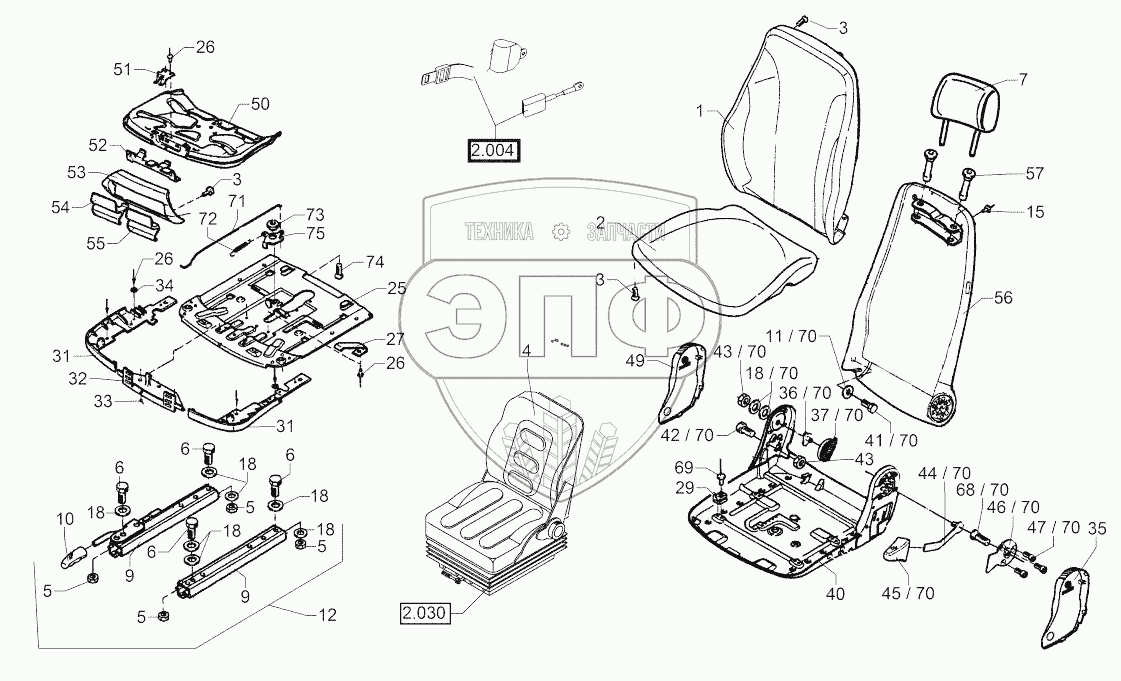 Каталог запасных частей к технике: RM-Terex TC35. Operators Seat Msg85