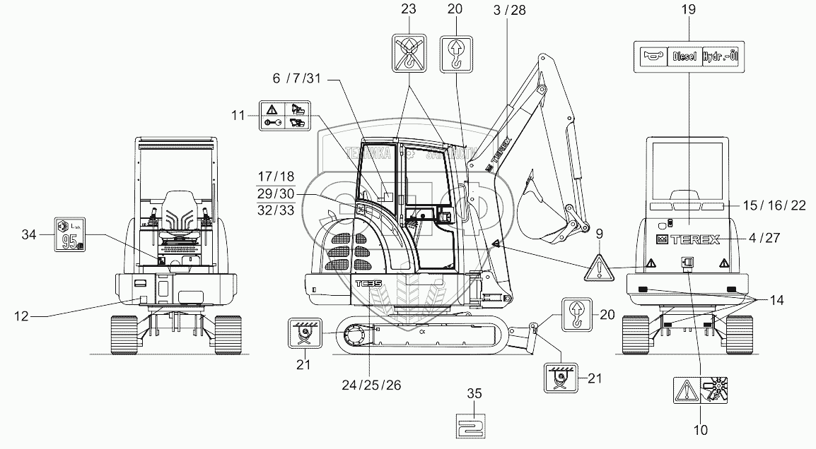 Каталог запасных частей к технике: RM-Terex TC35. Stickers Terex >Tc00351015