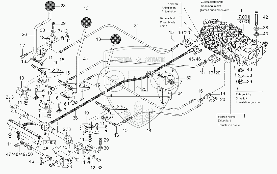 Каталог запасных частей к технике: RM-Terex TC35. Valve Control Mechanic