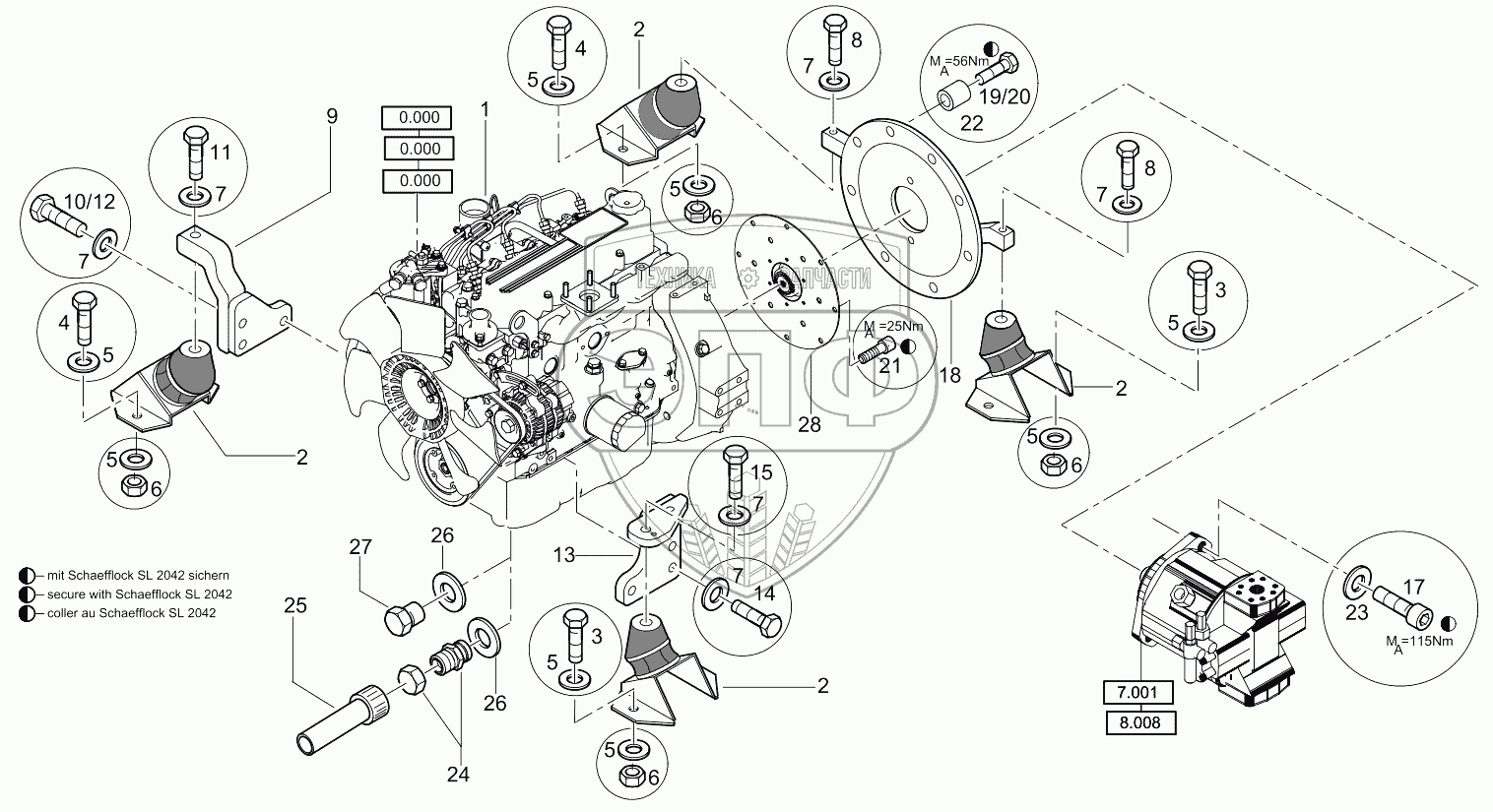 Каталог запасных частей к технике: RM-Terex TC-29. Motoreinbau, Pumpenanbau