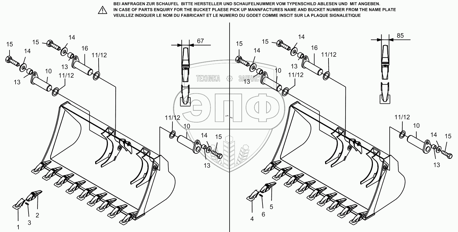 Каталог запасных частей к технике: RM-Terex TL-310. Bucket With Quick Attach