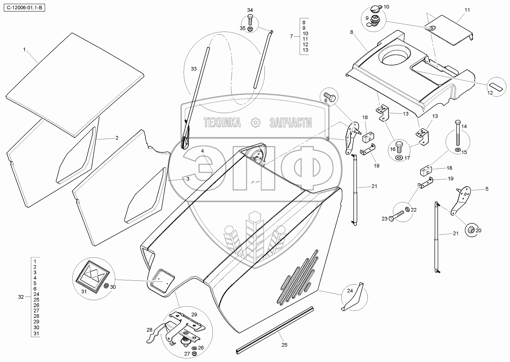 | 7 | 6114756M91W01 | Крышка стойки погрузчика в сборе | Нет на складе | |